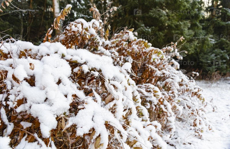Снежные кристаллы на кустах в лесу
