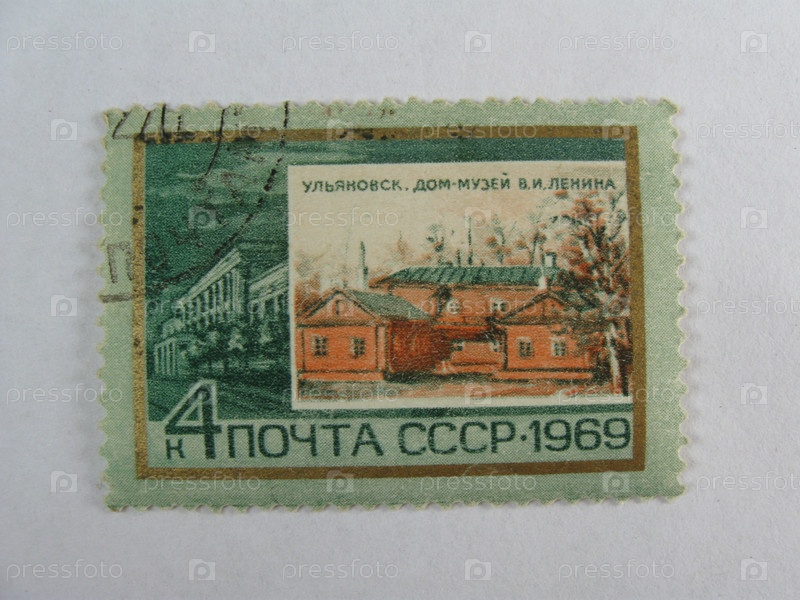 Старая коллекционная марка Ульяновска на белом фоне