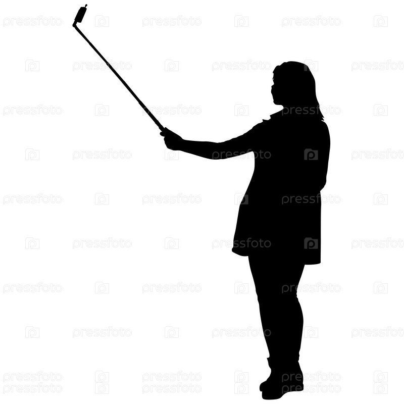 Силуэты женщины, делающей селфи со смартфоном на белом фоне