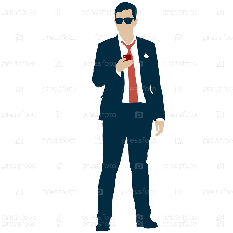 Силуэт бизнесмена в костюме с галстуком на белом фоне