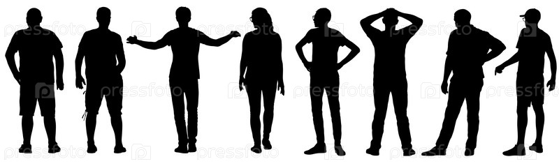 Силуэт группы людей, стоящих на белом фоне