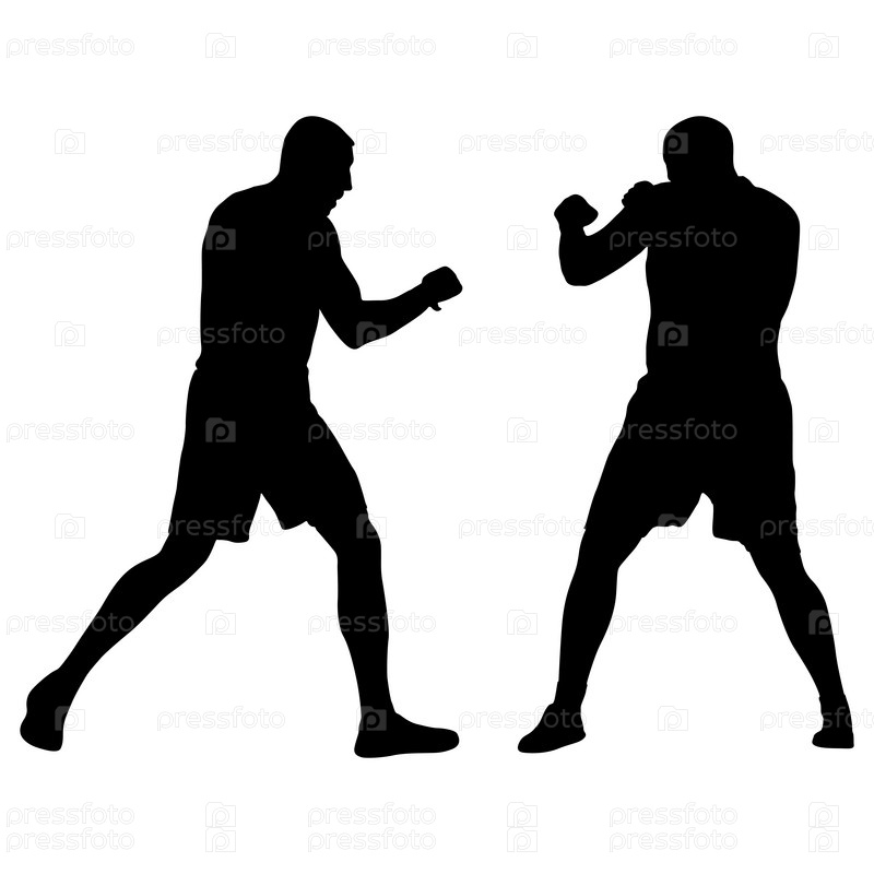 Черный силуэт спортсмена-боксера на белом фоне