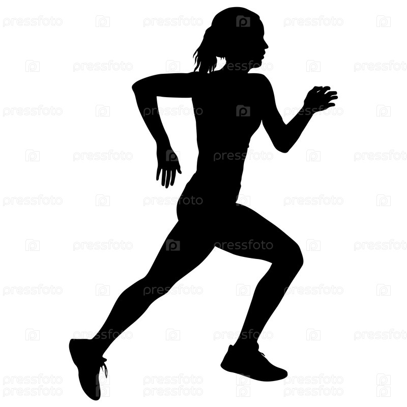 Черные силуэты бегунов спринтерских женщин на белом фоне