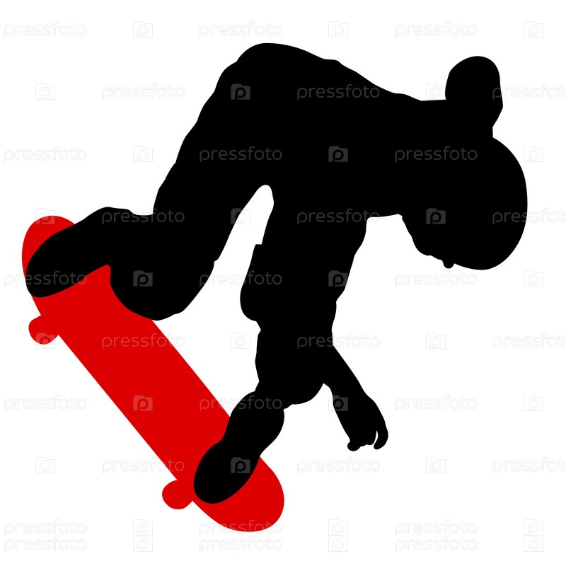 Черный силуэт спортсмена-скейтбордиста в прыжке