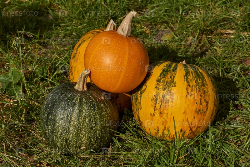 Тыква созрела в саду. Огородник вырастил красивые и вкусные тыквы. Осень