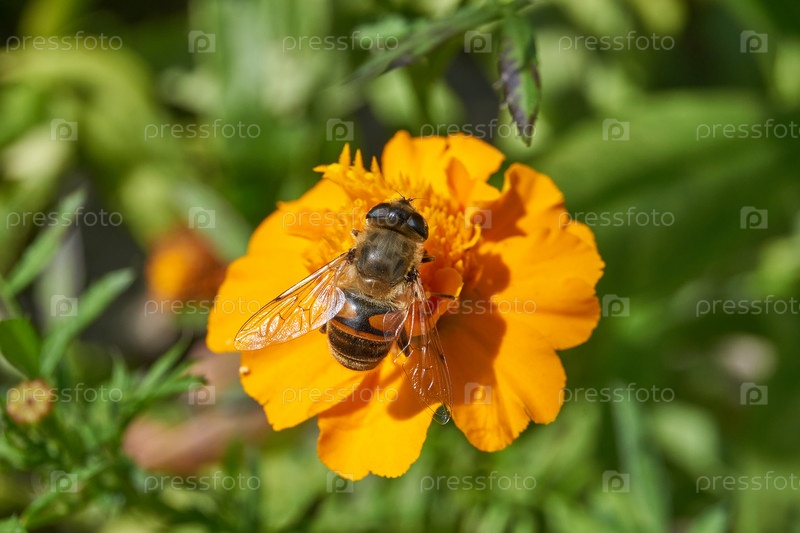 Муха собирает с цветков нектар и пыльцу. Осень