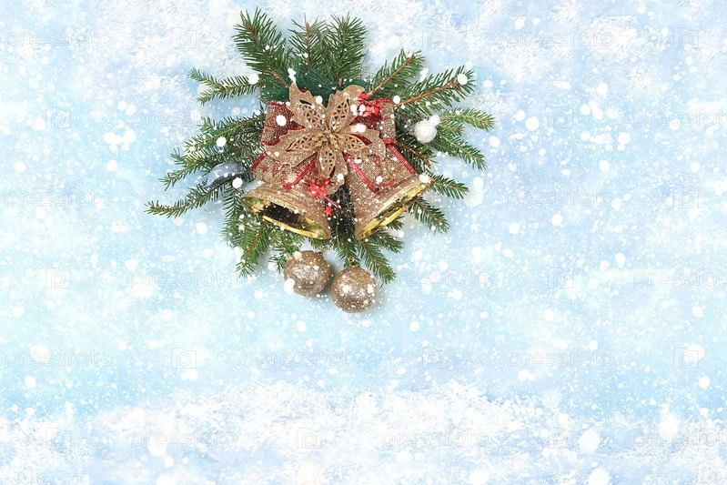 Рождество и Новый год 2024 фон с огнями и украшениями боке, игрушки с еловыми ветками в снежных хлопьях, баннер для праздничного экрана, шаблон для дизайна. Праздничная открытка, избирательный фокус,