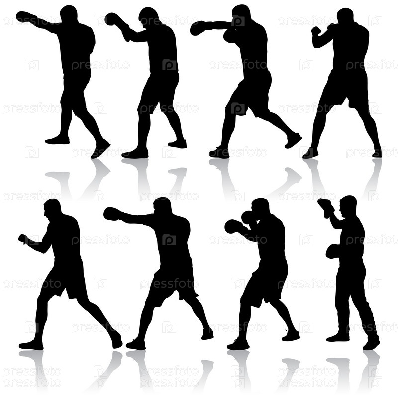 Черный силуэт спортсмена-боксера на белом фоне
