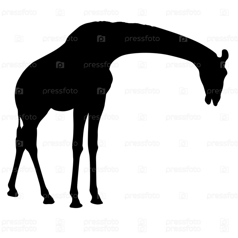 Силуэт высокого африканского жирафа на белом фоне