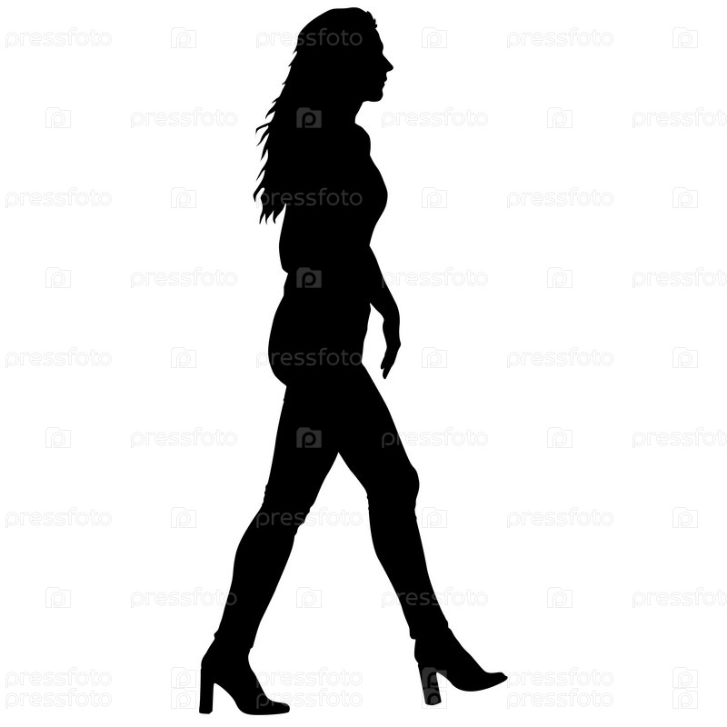 Силуэт идущей женщины на белом фоне