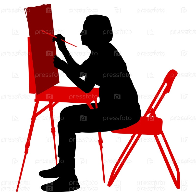 Силуэт, художник за работой на белом фоне