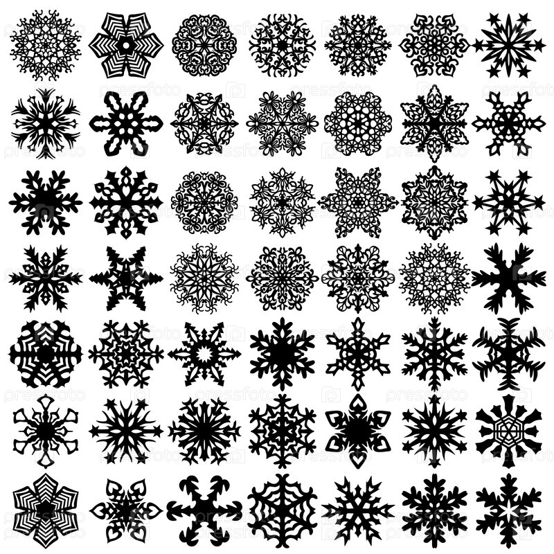 Установите силуэт иконок снежинок на белом фоне