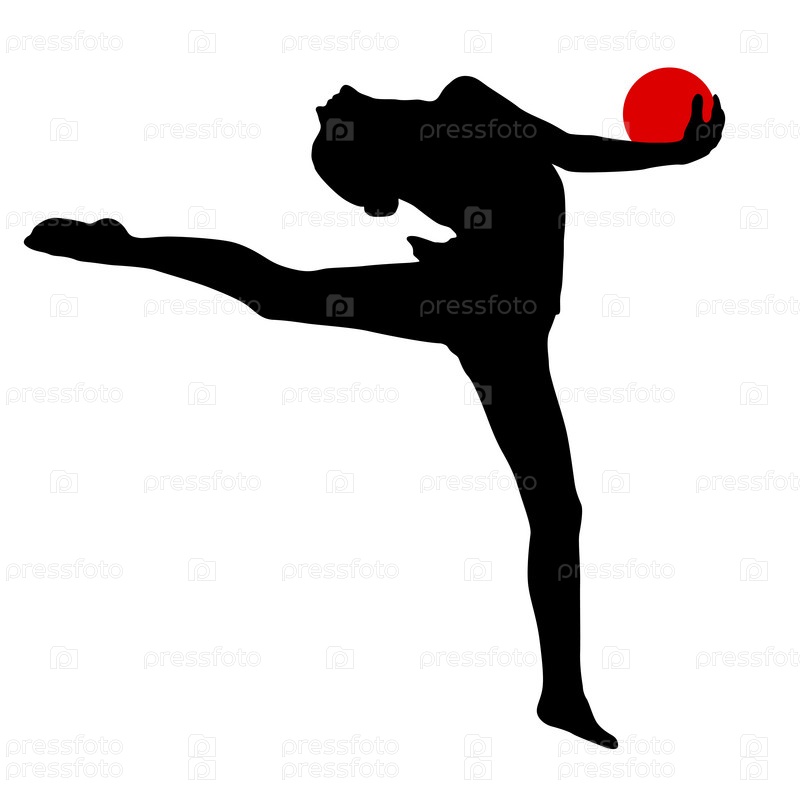 Силуэт девушки-гимнастки с мячом на белом фоне