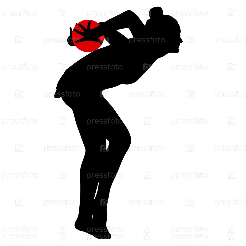 Силуэт девушки-гимнастки с мячом на белом фоне