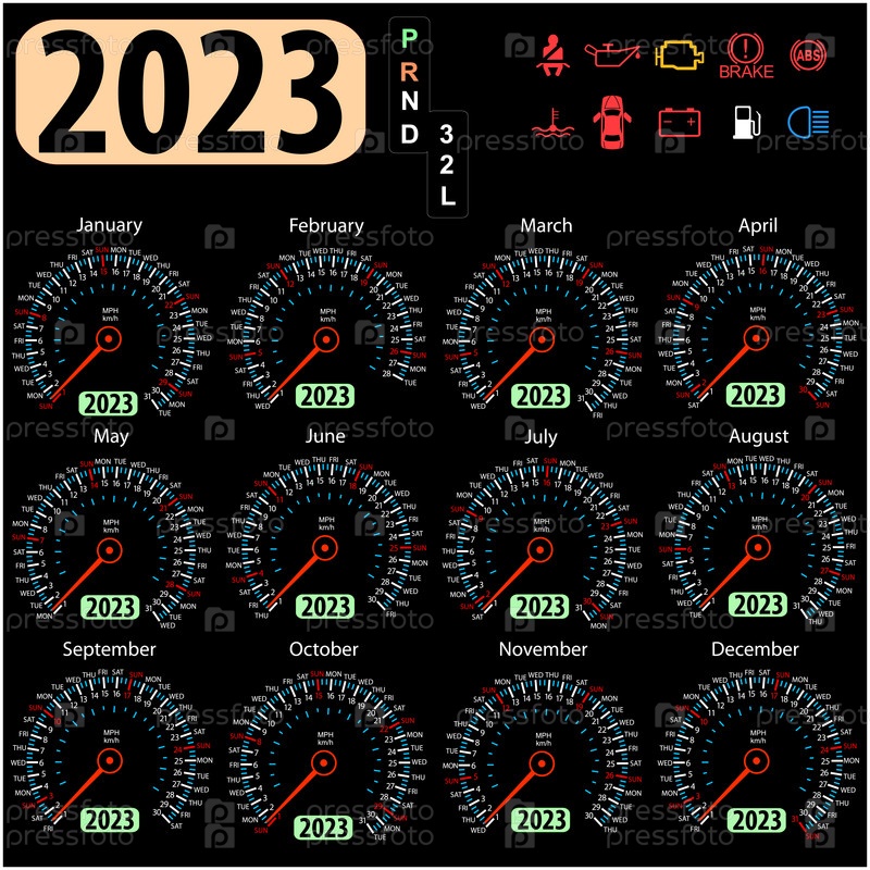 Календарь спидометра 2023 года в векторе