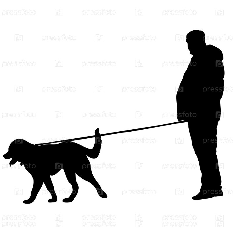 Силуэт человека и собаки на белом фоне