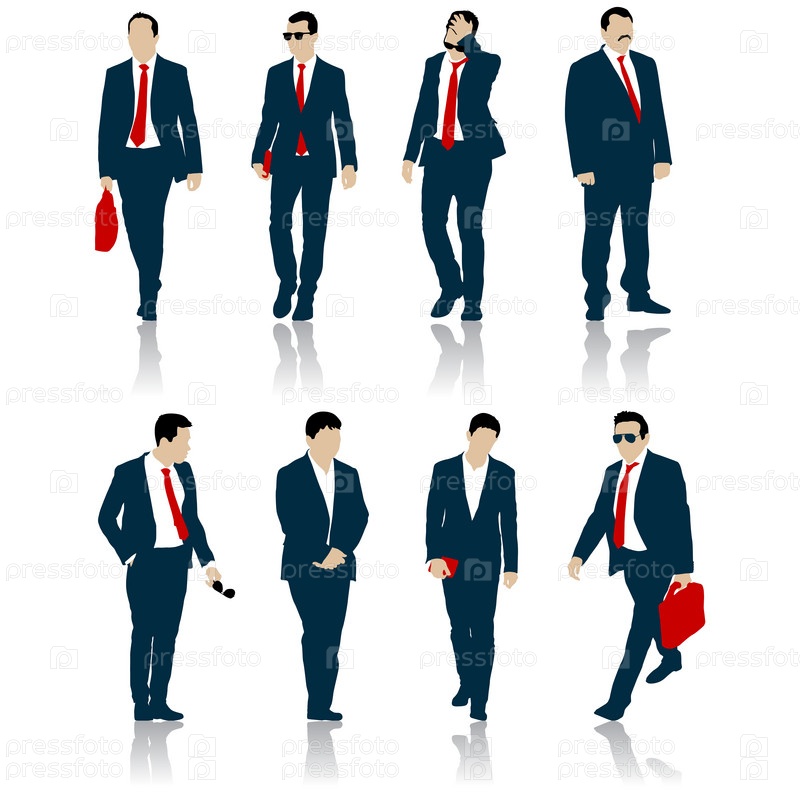 Установите силуэт бизнесмена в костюме с галстуком на белом фоне