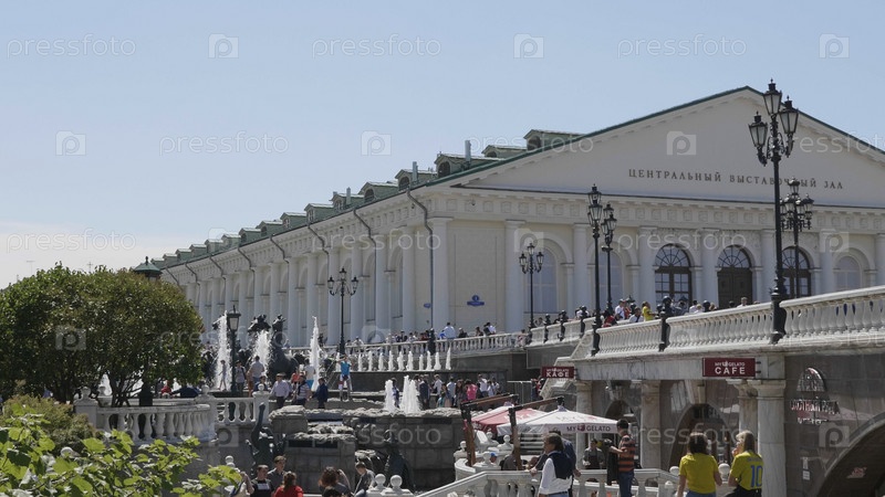 Москва, Россия - 01 июля 2019 года: Здание Московского Манежа. Надпись на здании: "Центральный выставочный зал"