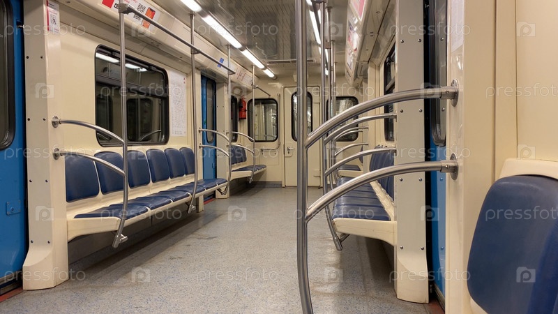 Пустой вагон московского метро, вид изнутри