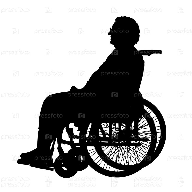 Силуэты инвалидов в инвалидной коляске на белом фоне