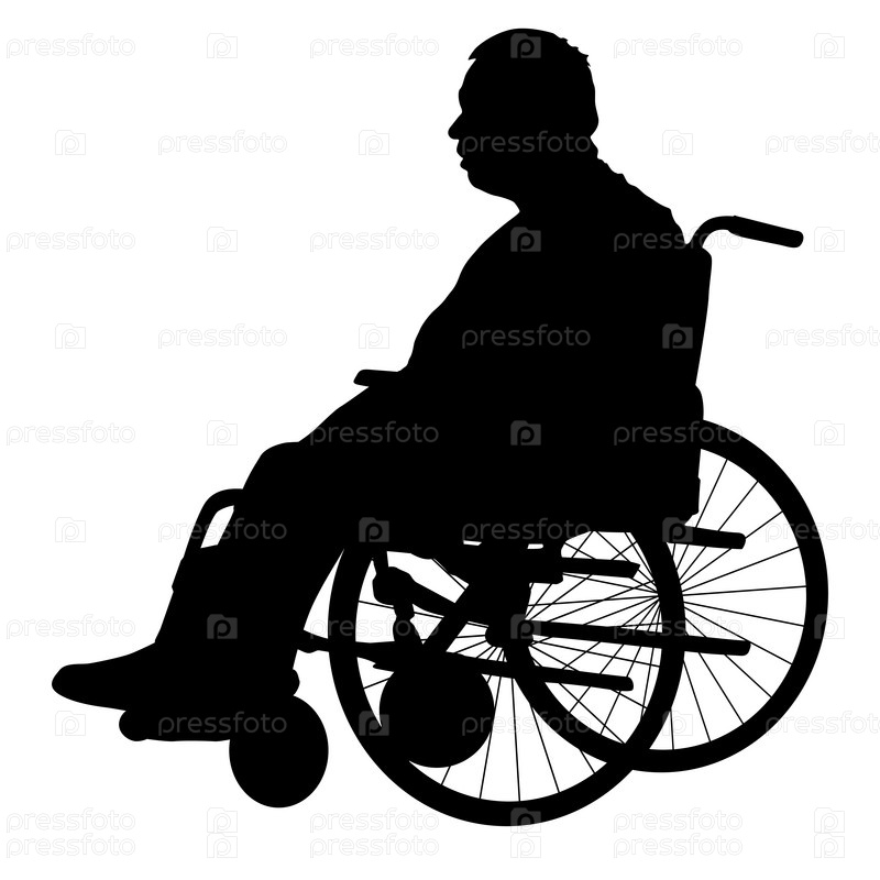 Силуэты инвалидов в инвалидной коляске на белом фоне