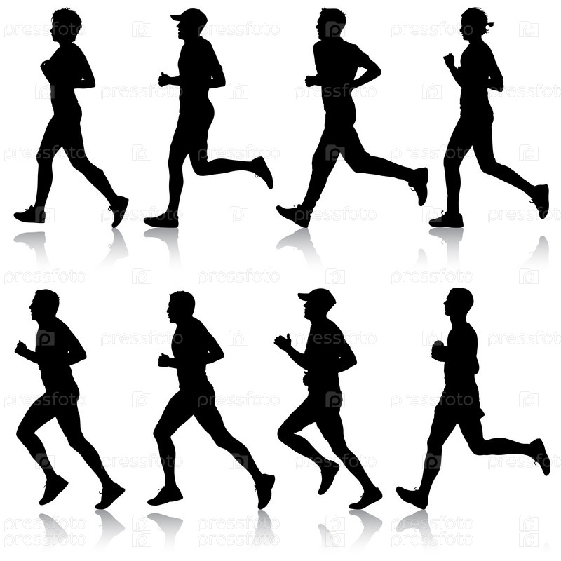 Набор силуэтов. Бегуны на спринте, мужчина и женщина