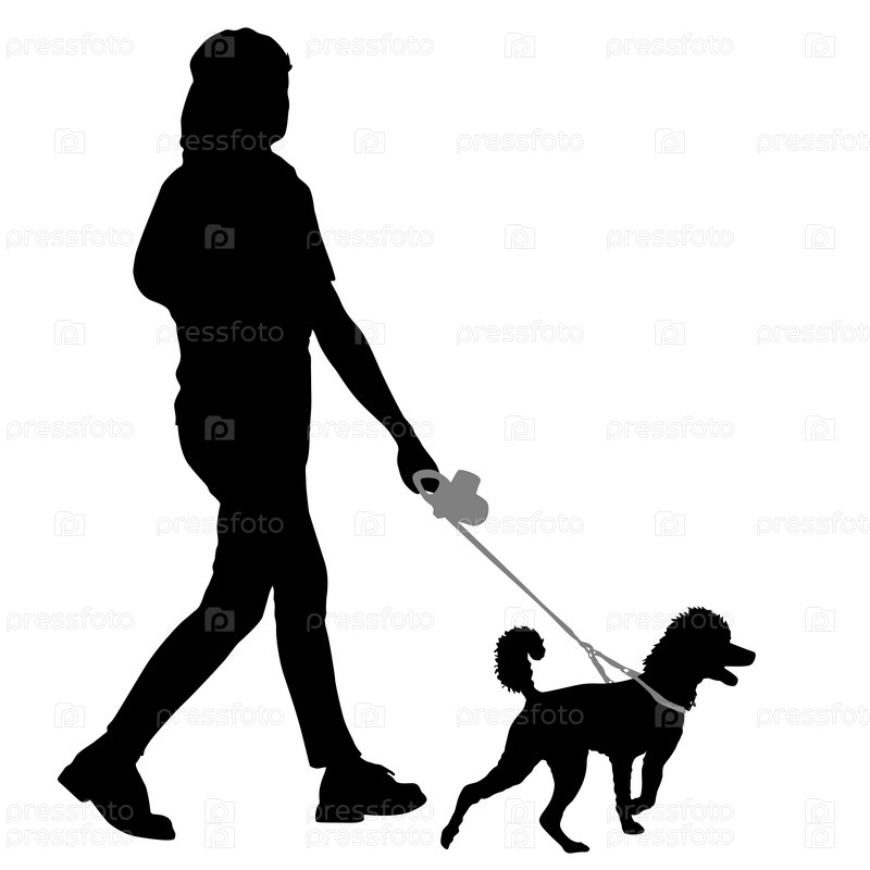 Силуэт женщины и собаки на белом фоне