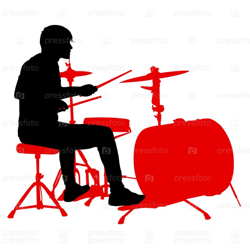 Силуэт музыканта, барабанщика на белом фоне, векторная иллюстрация