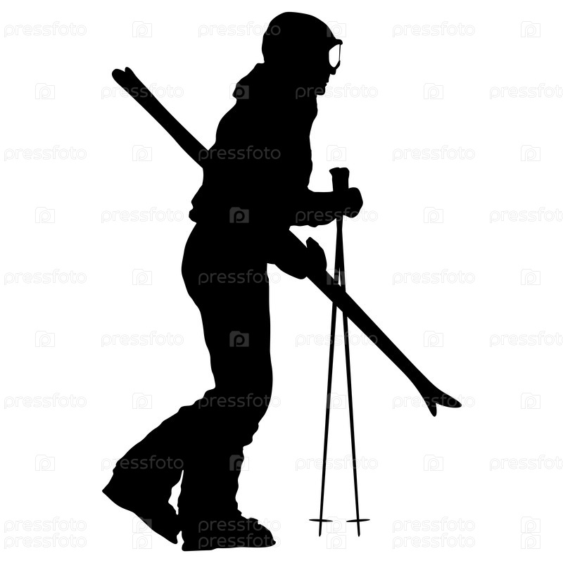 Горнолыжник со снятыми лыжами спортивный силуэт