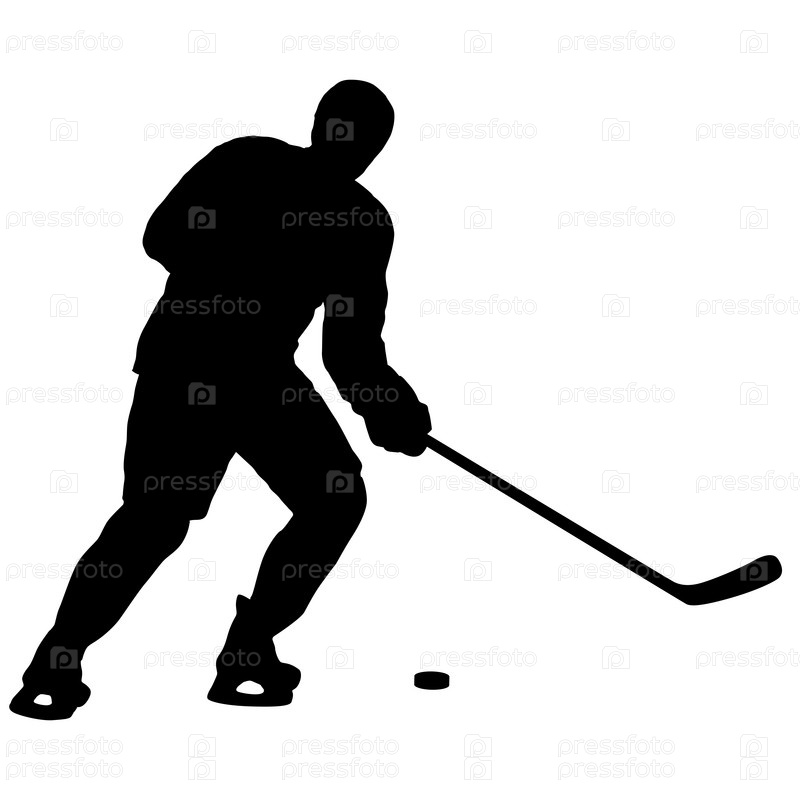Силуэт хоккеиста на белом фоне