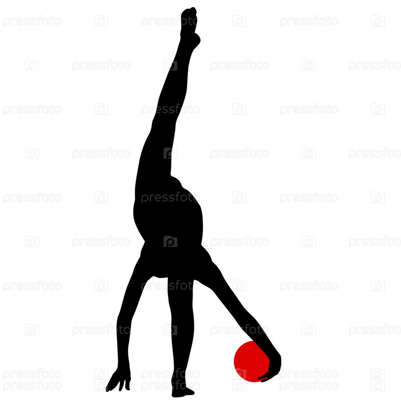 Силуэт девушки-гимнастки с мячом на белом фоне
