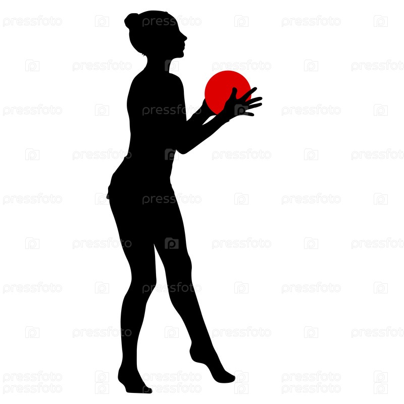 Силуэт девушки-гимнастки с мячом на белом фоне