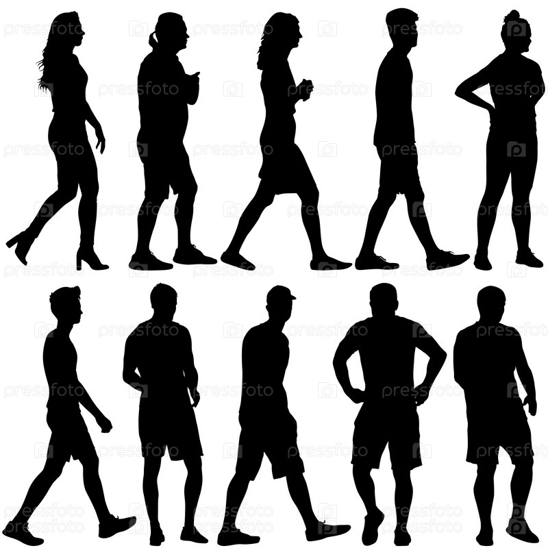 Силуэт группы людей, стоящих на белом фоне