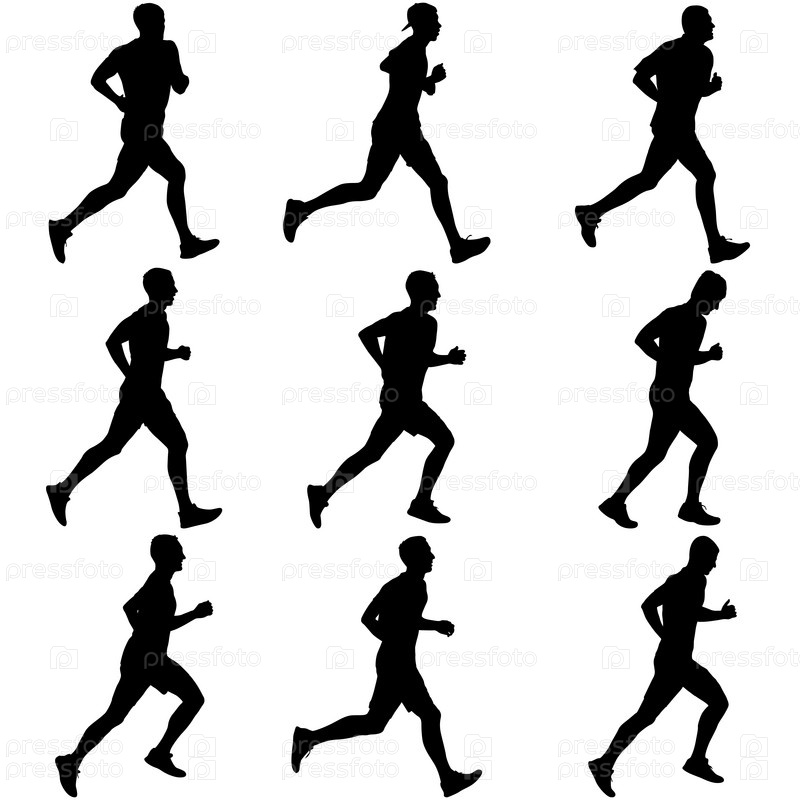 Набор силуэтов. Бегуны на спринте на белом фоне