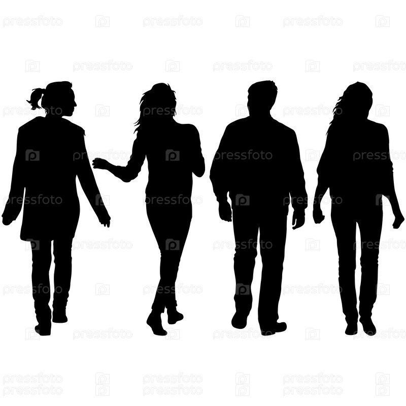 Силуэт группы людей, стоящих на белом фоне