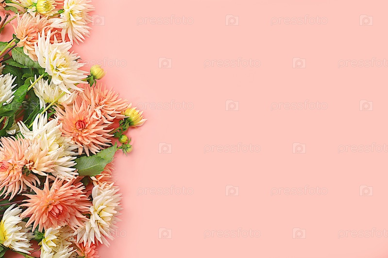 Рамка из цветов георгина, абстрактная цветочная композиция, весенний или осенний фон с местом для текста, минимальная концепция праздника, натюрморт, поздравительная открытка. избирательный фокус
