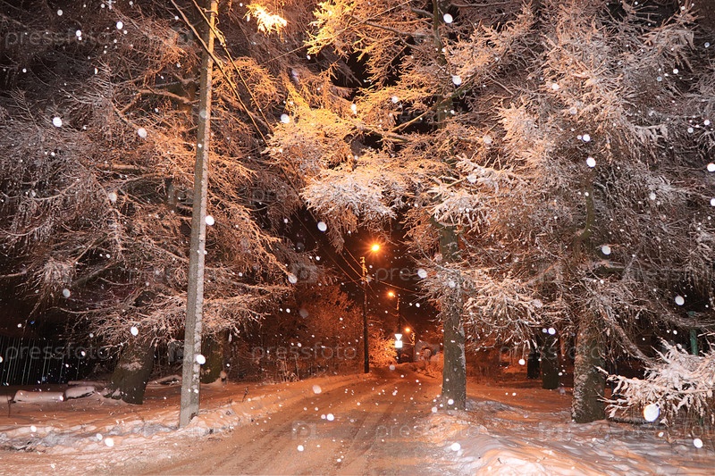 Русская природа зимой, ночной рождественский фон. После снегопада ветки деревьев покрыты снегом и сверкают на солнце, в сильный мороз и низкие температуры. Это красивый зимний баннер, новогодняя открытка, избирательный фокус
