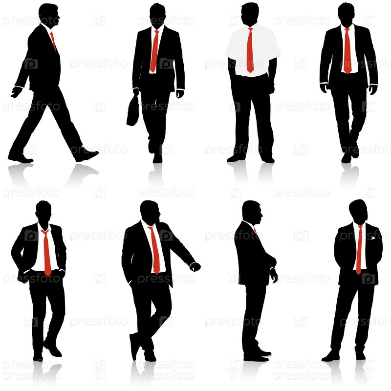 Установите силуэт бизнесмена в костюме с галстуком на белом фоне