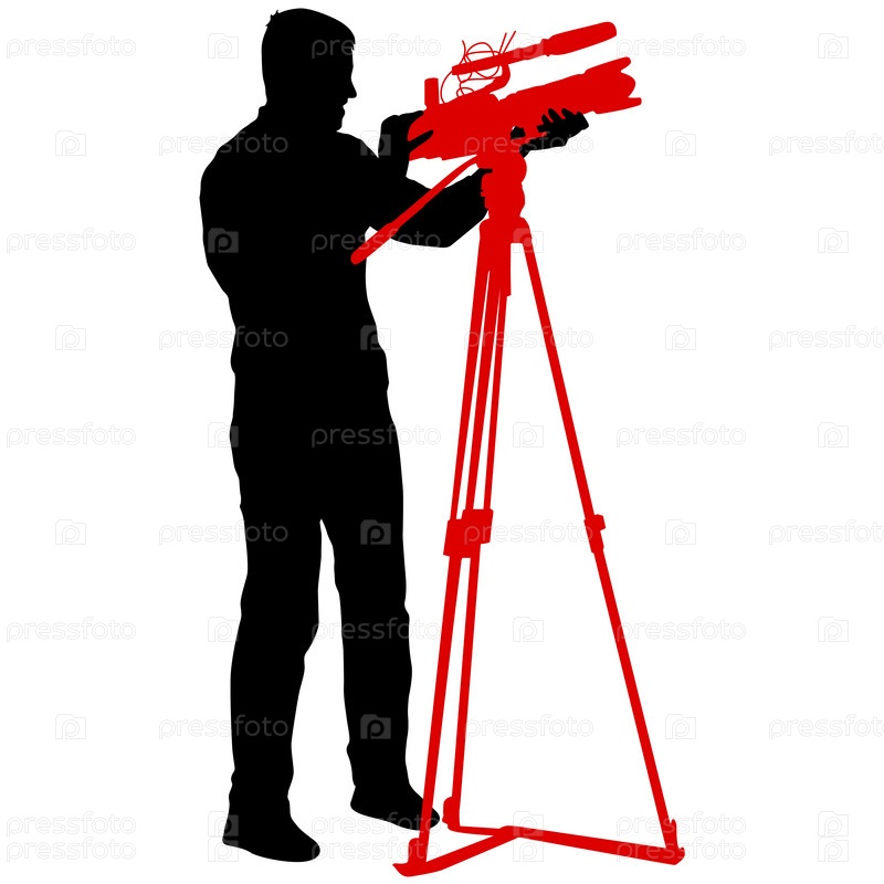 Оператор с видеокамерой. Силуэты на белом фоне