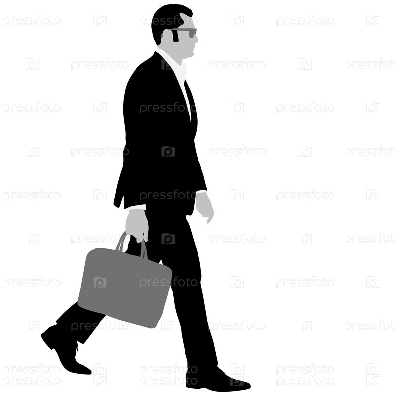 Силуэт бизнесмена в костюме с галстуком и портфелем на белом фоне
