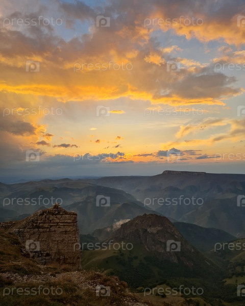 Закат в горах на плато Бермамыт