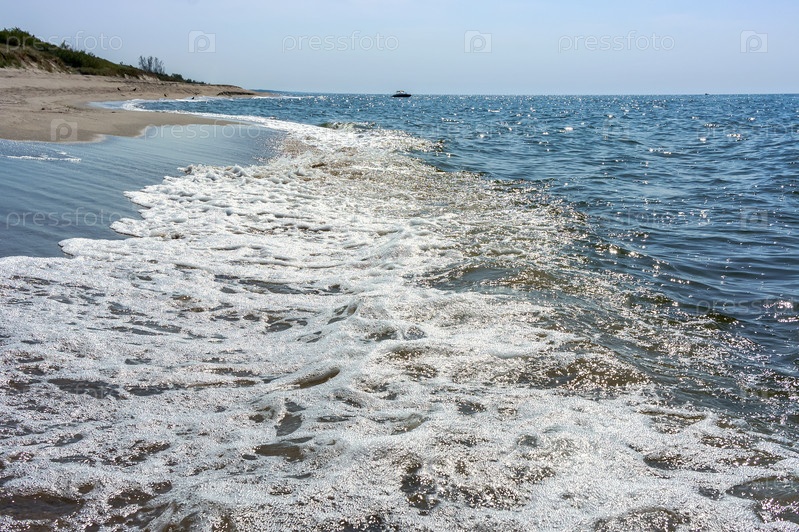 Морские волны, пасмурная погода, Балтийское море, облака в небе