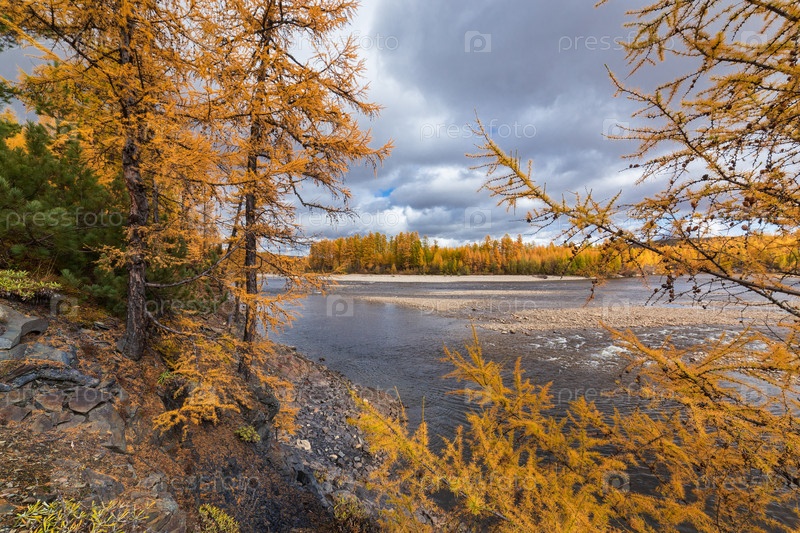 Осенний пейзаж на реке Чульман в Южной Якутии, Россия