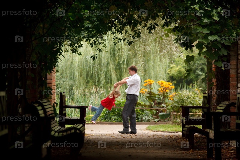 Отец и дочь в летнем саду