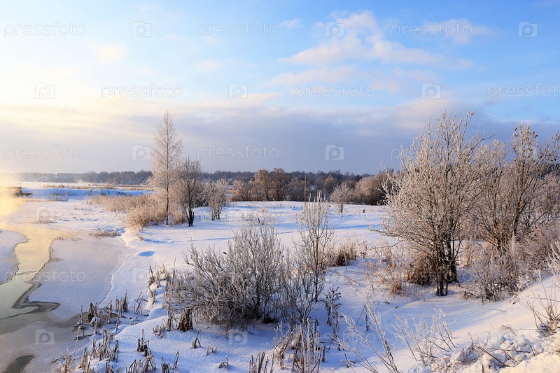 Дикая природа зимой, рождественский фон. После снегопада ветки деревьев покрыты снегом и сверкают на солнце, в сильный мороз и низкие температуры. Это красивый зимний баннер, новогодняя открытка, избирательный фокус