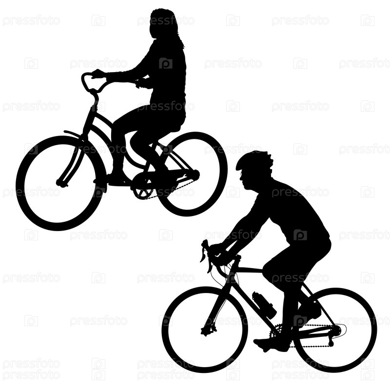 Установите силуэт велосипедиста мужского и женского пола на белом фоне