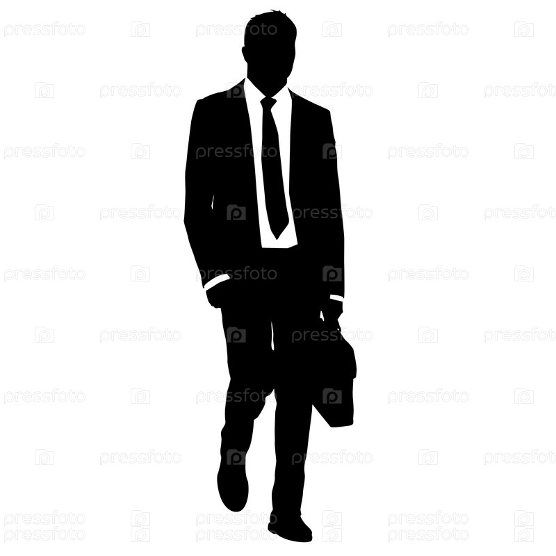 Силуэт бизнесмена в костюме с галстуком на белом фоне