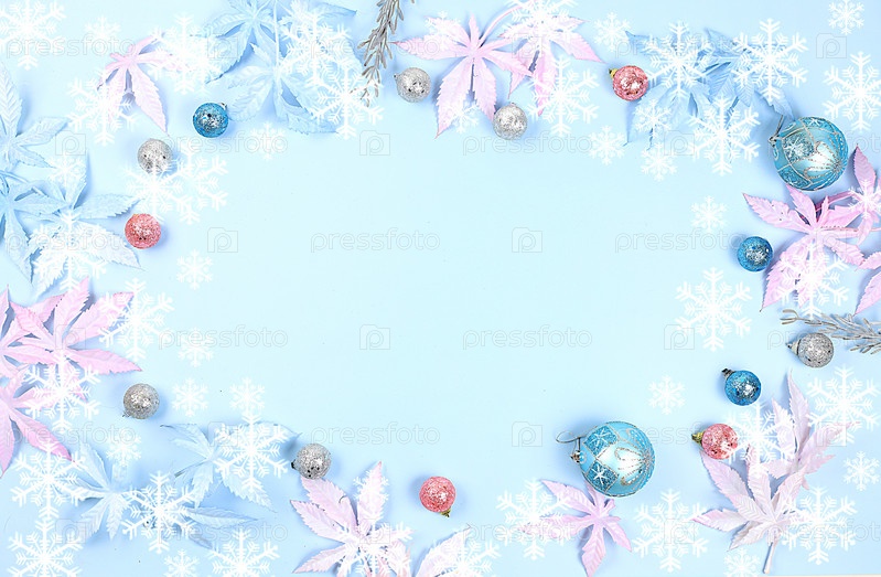 Рождество и Новый год 2024 фон с огнями и украшениями боке, игрушки с еловыми ветками в снежных хлопьях, баннер для праздничного экрана, шаблон для дизайна. Праздничная открытка, избирательный фокус,
