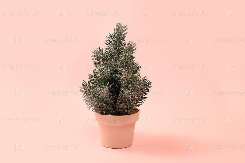 Рождественский и новогодний макет, шаблон для дизайна и витрины продукции, абстрактная концепция праздника, минимальная творческая праздничная композиция с елкой в кружке, реклама или баннер, выборочный фокус