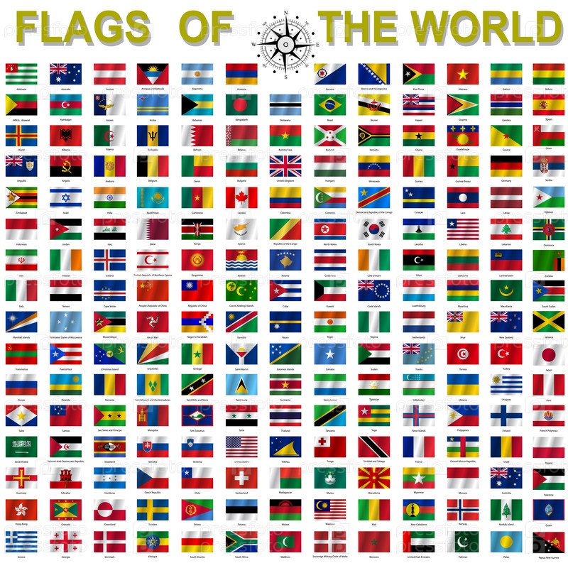 Набор флагов суверенных государств мира, подписанных названиями стран